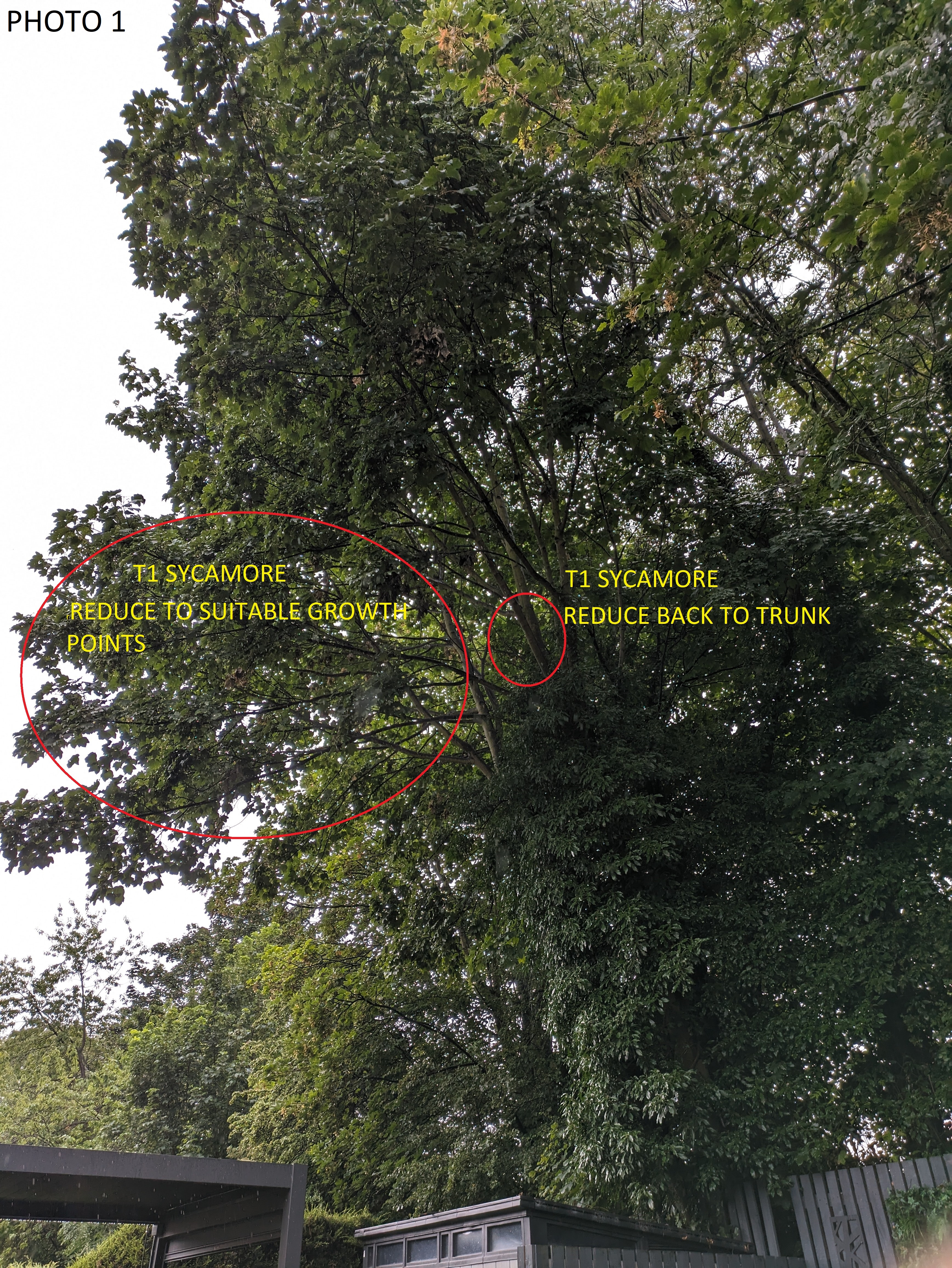 Reduce back Sycamores T1 and T4 and Ash trees T2 and T3 as marked on the photos back to suitable growth points within TPO 6/1993